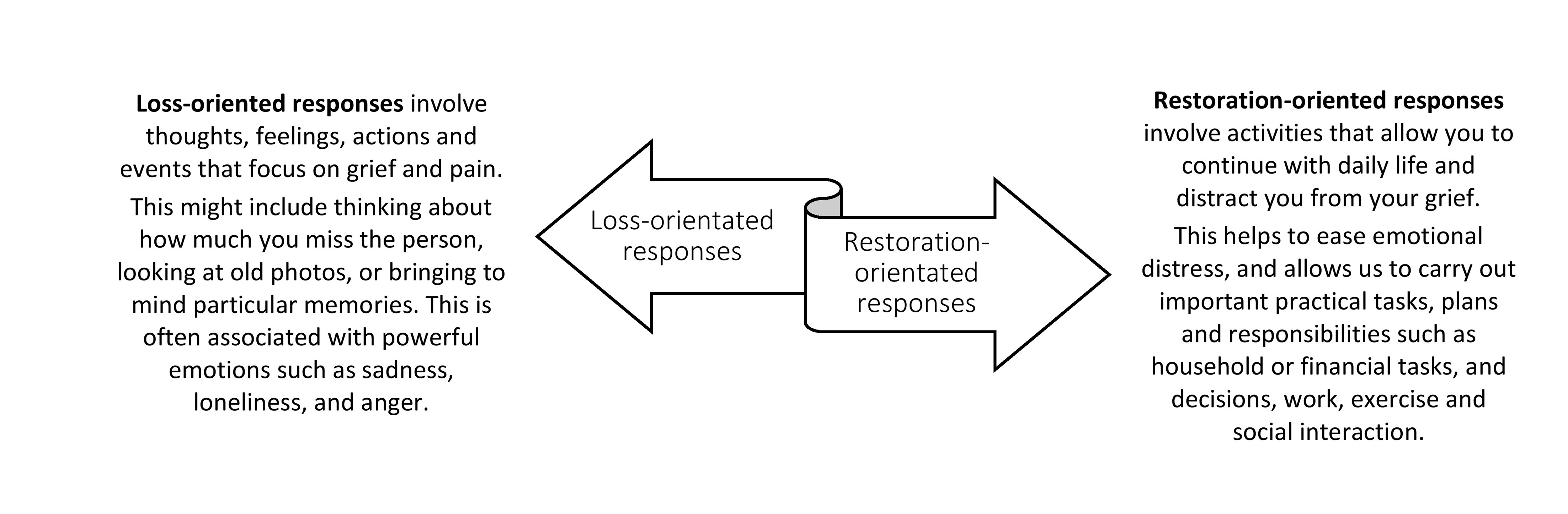 - Restoration-oriented coping: attending to the practical and social changes that follow bereavement.