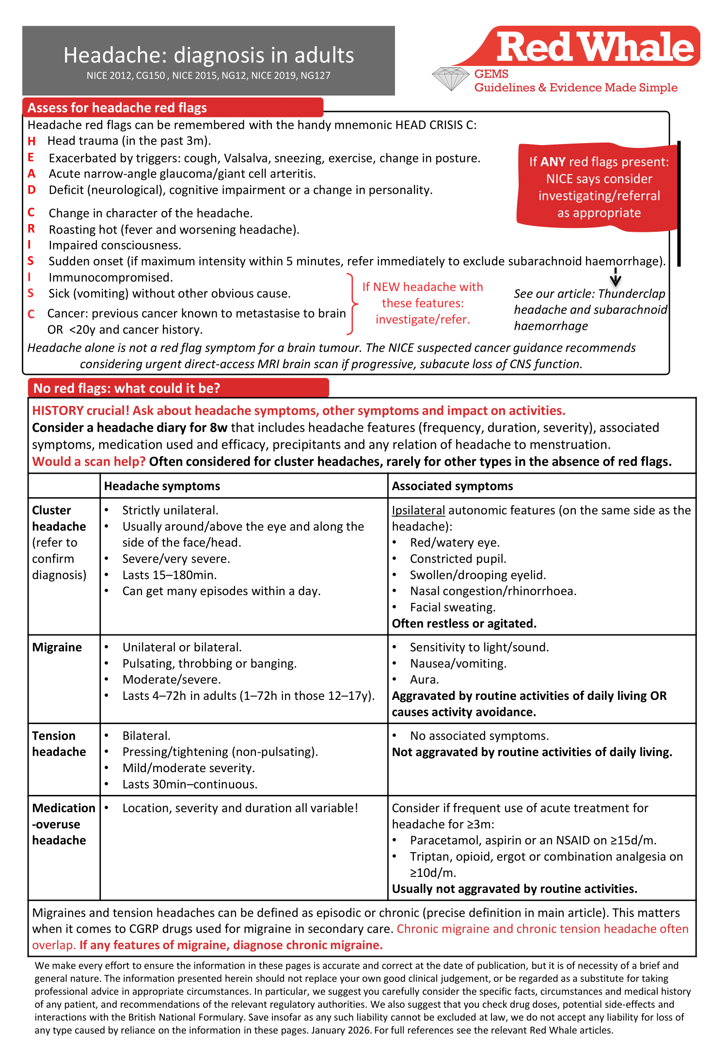 It is based on the NICE guidance on headaches in over-12s (NICE 2012, CG150) and the SIGN guidance on pharmacological management of migraine, which covers medication-overuse headache (SIGN 155, 2023).