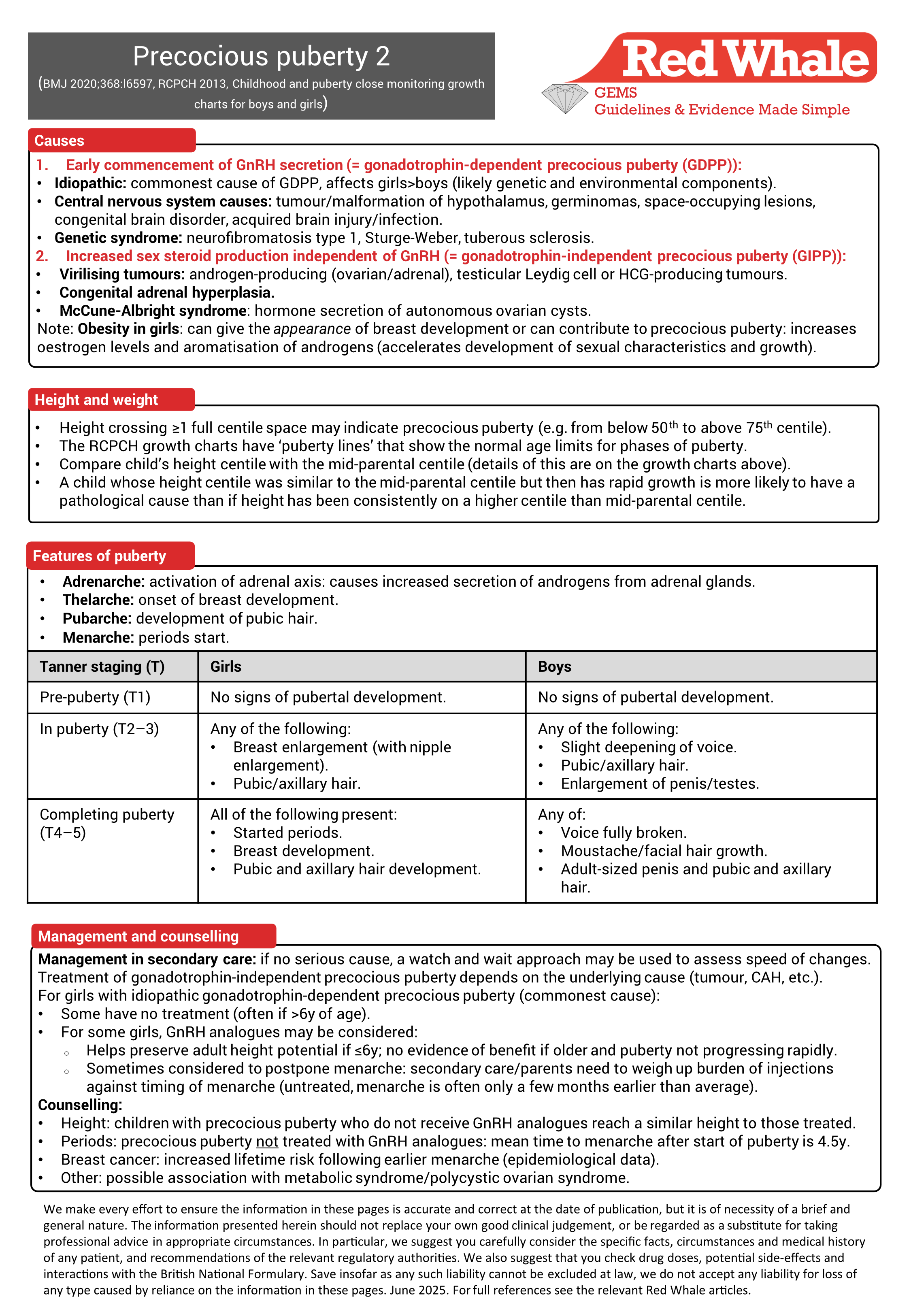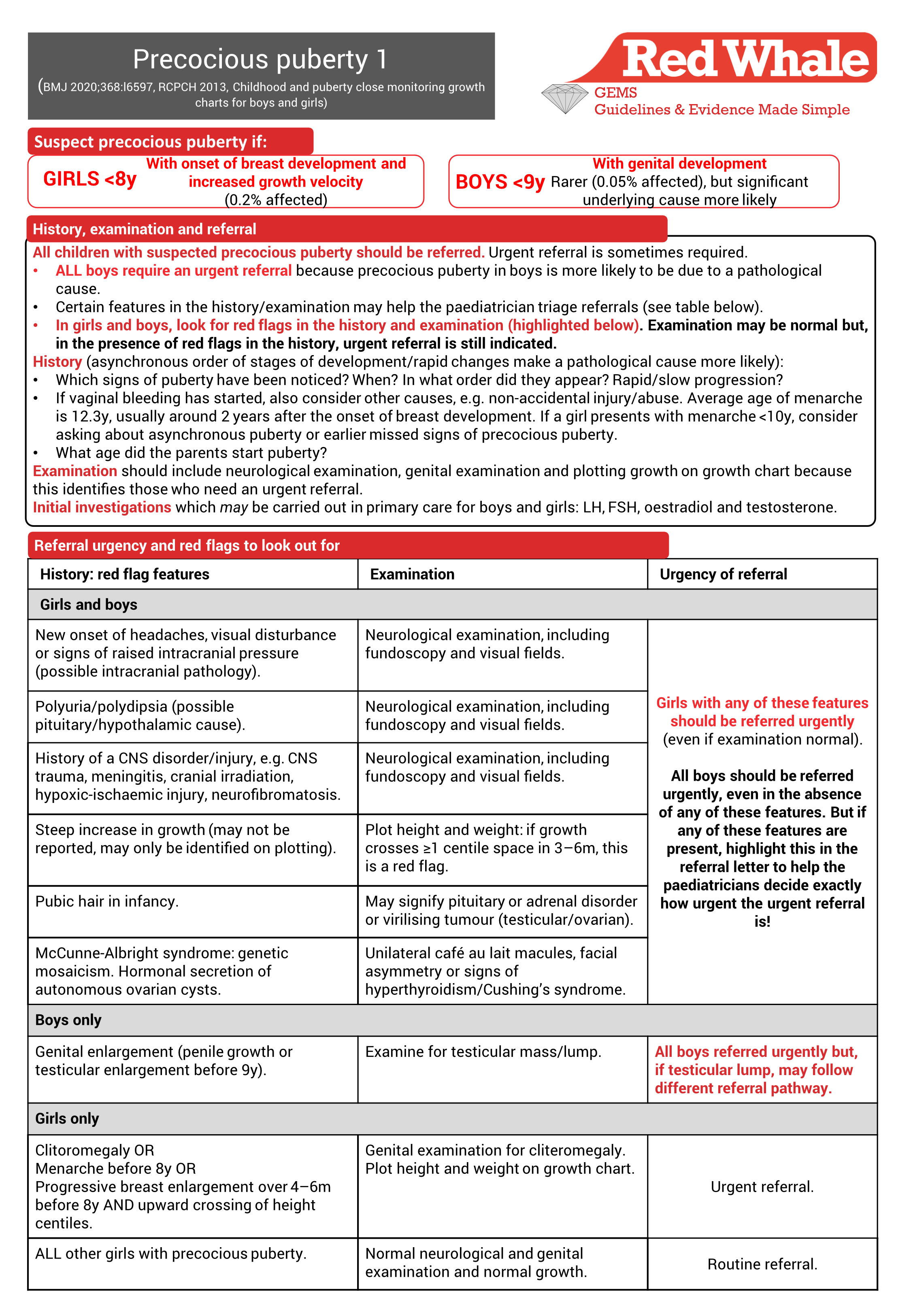 Please follow the link for a PDF version of the GEMS for download/printing: Precocious puberty: GEMS